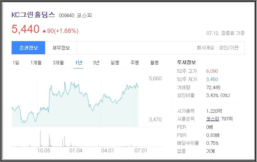 이로써 KC그린홀딩스의 KC코트렐 지분율은 34.7%이며,